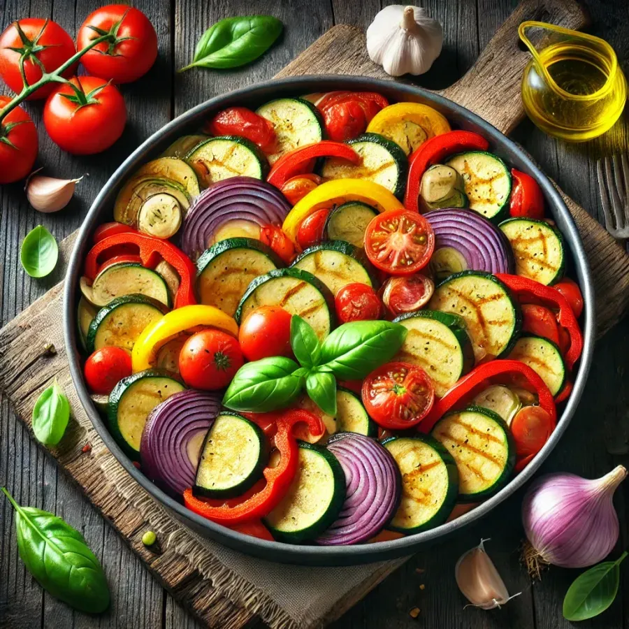 At the heart of this vegan delight lies an array of fresh, seasonal vegetables meticulously selected to create a harmonious blend of textures and flavors. Zucchini, eggplant, bell peppers, tomatoes, and onions come together in perfect balance, each contributing their unique essence to the dish. The natural sweetness of the vegetables is enhanced by the subtle tang of garlic and the aromatic depth of herbs de Provence, creating a medley that is both comforting and invigorating.